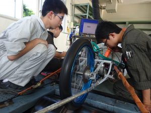 本校自動車科の設備であるシャシダイナモを使って動力実験を行えるという恵まれた環境にいるのは事実ですが、ひとつひとつ条件を変えて実験をするのはなかなか根気が必要です。