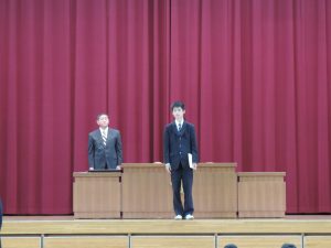 「この賞状1枚に注がれた努力は、必ず社会で評価される皆さんの勲章だ。この1年間の皆さんの生活は、間違いなく社会人基礎力の向上に結び付いている。新2・3年生諸君、先輩を超えよう! がんばれ!」とエールを送っていました。