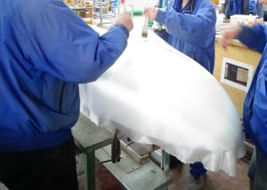 本校では先輩方の代から年月をかけて試行錯誤を繰り返し、FRPのつなぎ目やシワの消し方など問題点を克服しノウハウを積み上げてきました。