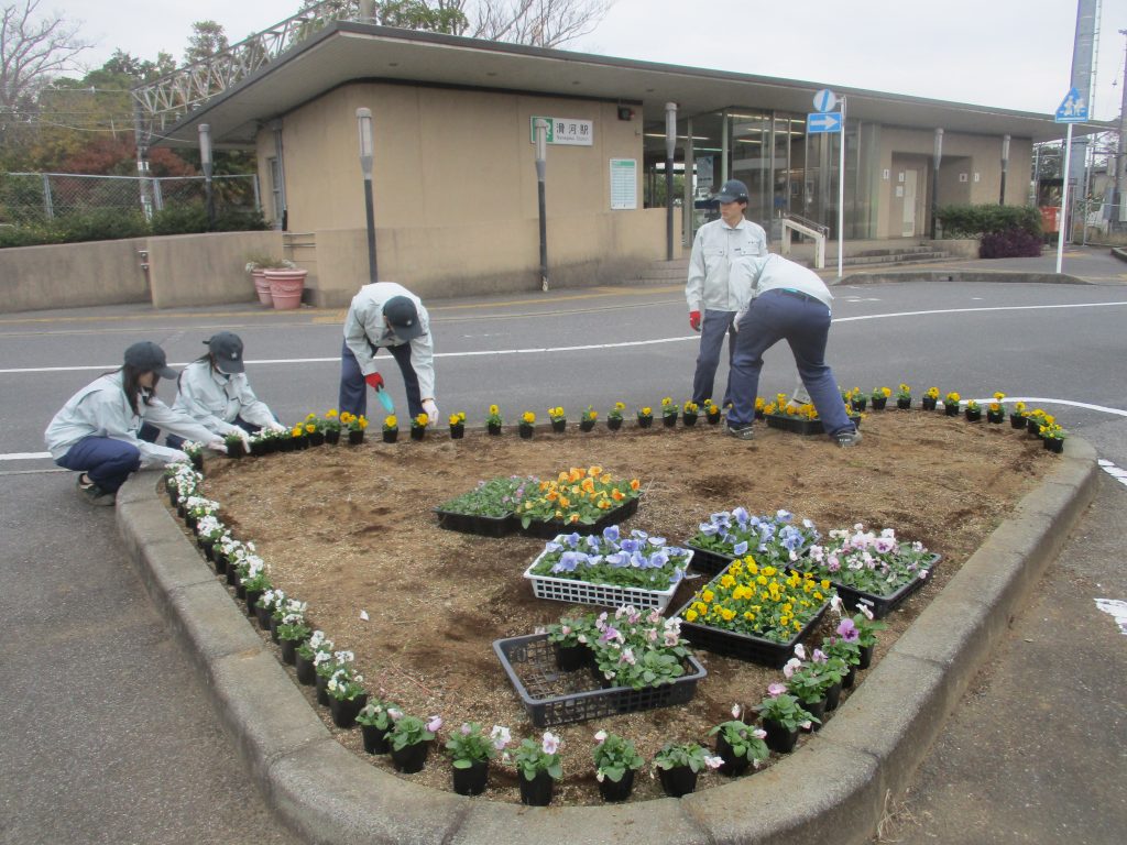 11月27日(木)に園芸科1年生で滑河駅の花壇にパンジー、ビオラを植えました。