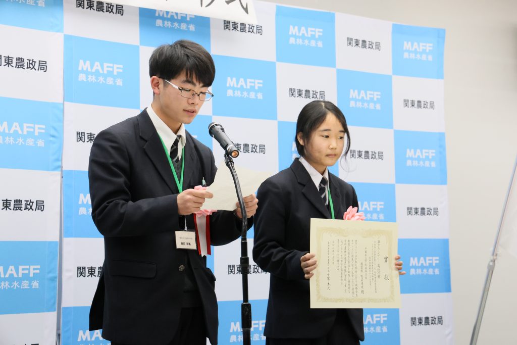 2月6日金曜日に、さいたま新都心合同庁舎にて表彰式があり、園芸科野菜専攻2年「日隈美蘭」さん、「磯部春颯」さんが代表として表彰状を受け取りました。
