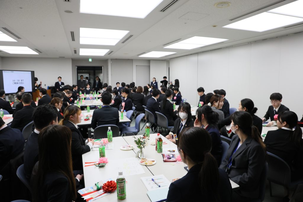 表彰式終了後に、参加した各学校の生徒との交流会が行われ、互いの研究内容や課題について積極的に話し合い、知見を広げることができました。
